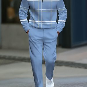 This product has multiple variants. The options may be chosen on the product pageMen's Sets2025 Autumn New Fresh Light Blue Striped Pattern Men’s Casual Sportswear Set, Fashionable Simple Half-Zip Crew Neck Pullover Long Sleeve T-Shirt + Comfort Sports Leisure Pants for Daily Wear, Exercise & Commute, Mens Clothes, Men Clothes, Men Outfit Sets, Airport Outfit For Men, Mens Xmas Outfits, Clothes For Men