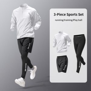 This product has multiple variants. The options may be chosen on the product pageMen's Sets3-Piece Men’s Quick-Dry Sportswear Set, Including New Henley T-Shirt Long Sleeve Top, Pocket Zipper Drawstring Shorts, and High-Elasticity Leggings – Polyesteru002FSpandex Blend, Suitable for Outdoor Leisure, Running, Fitness, Basketball, and Training