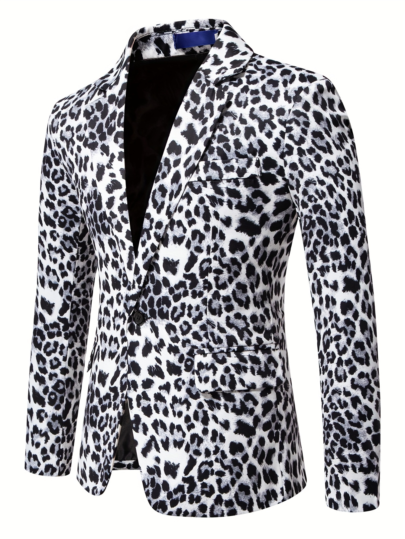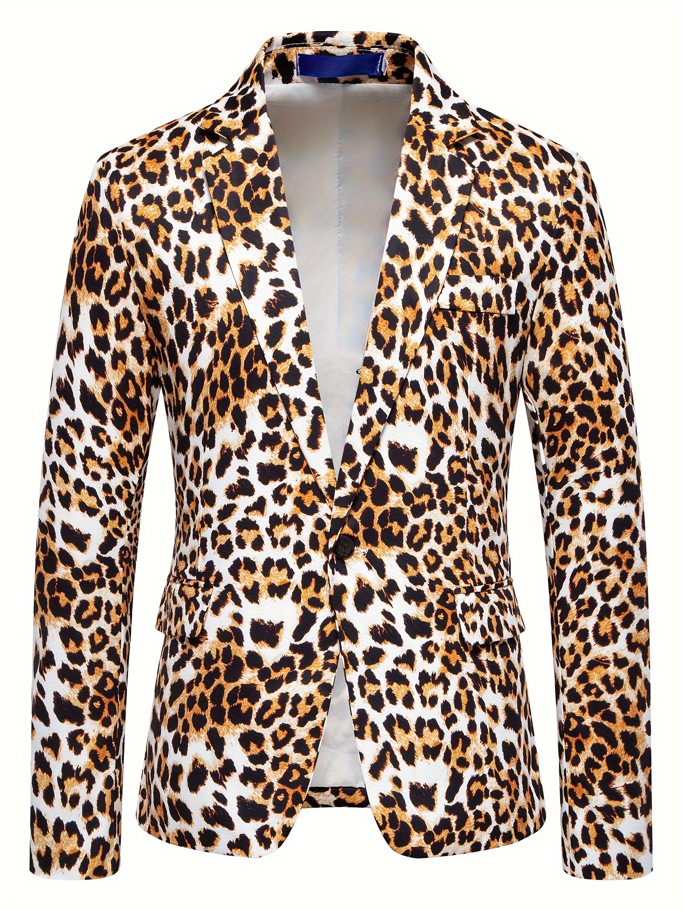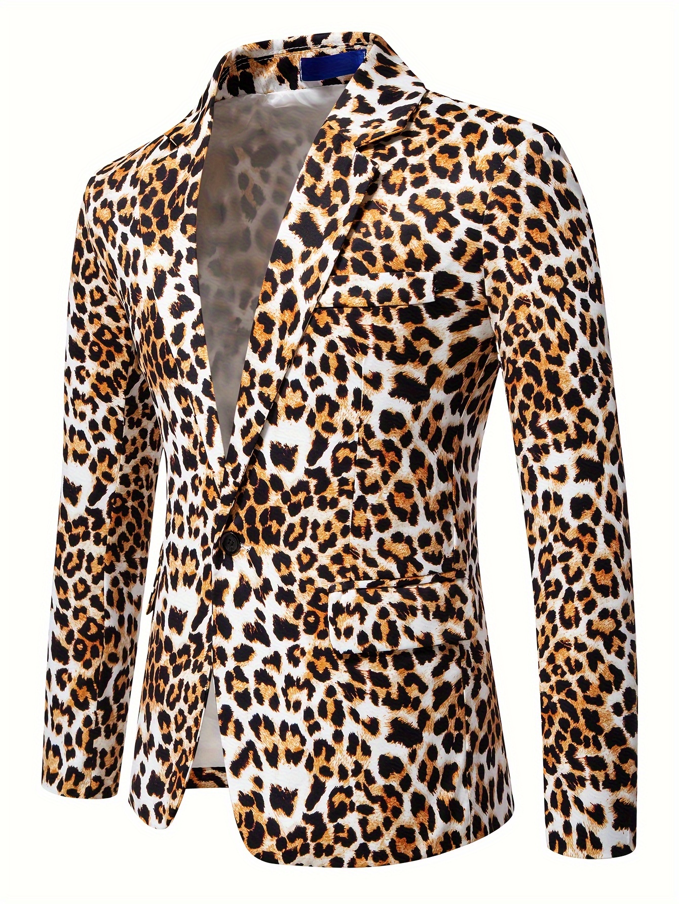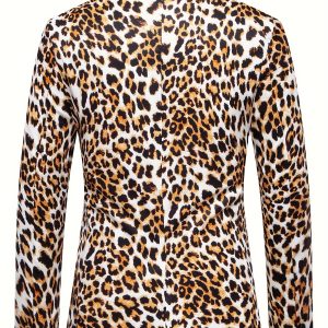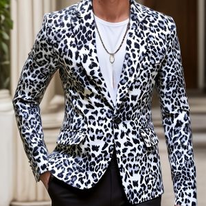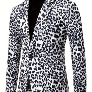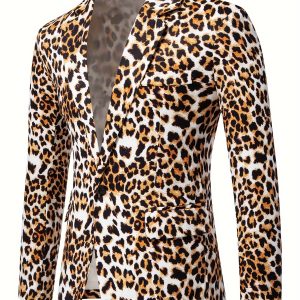 1pc Men’S Leopard Print Blazer – Casual Polyester Suit Jacket with Lapel Collar, Woven Non-Stretch Fabric, Skinny Fit for Fallu002FWinter