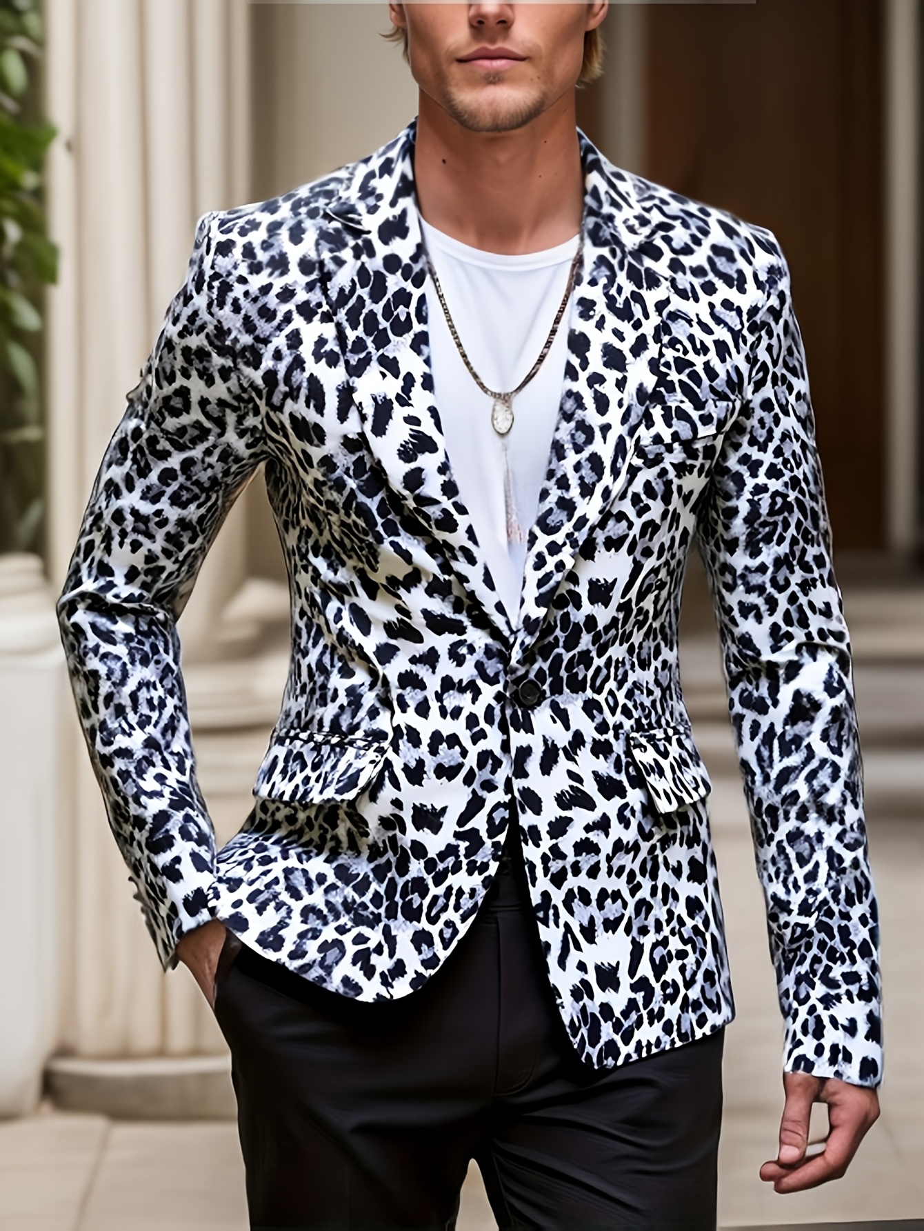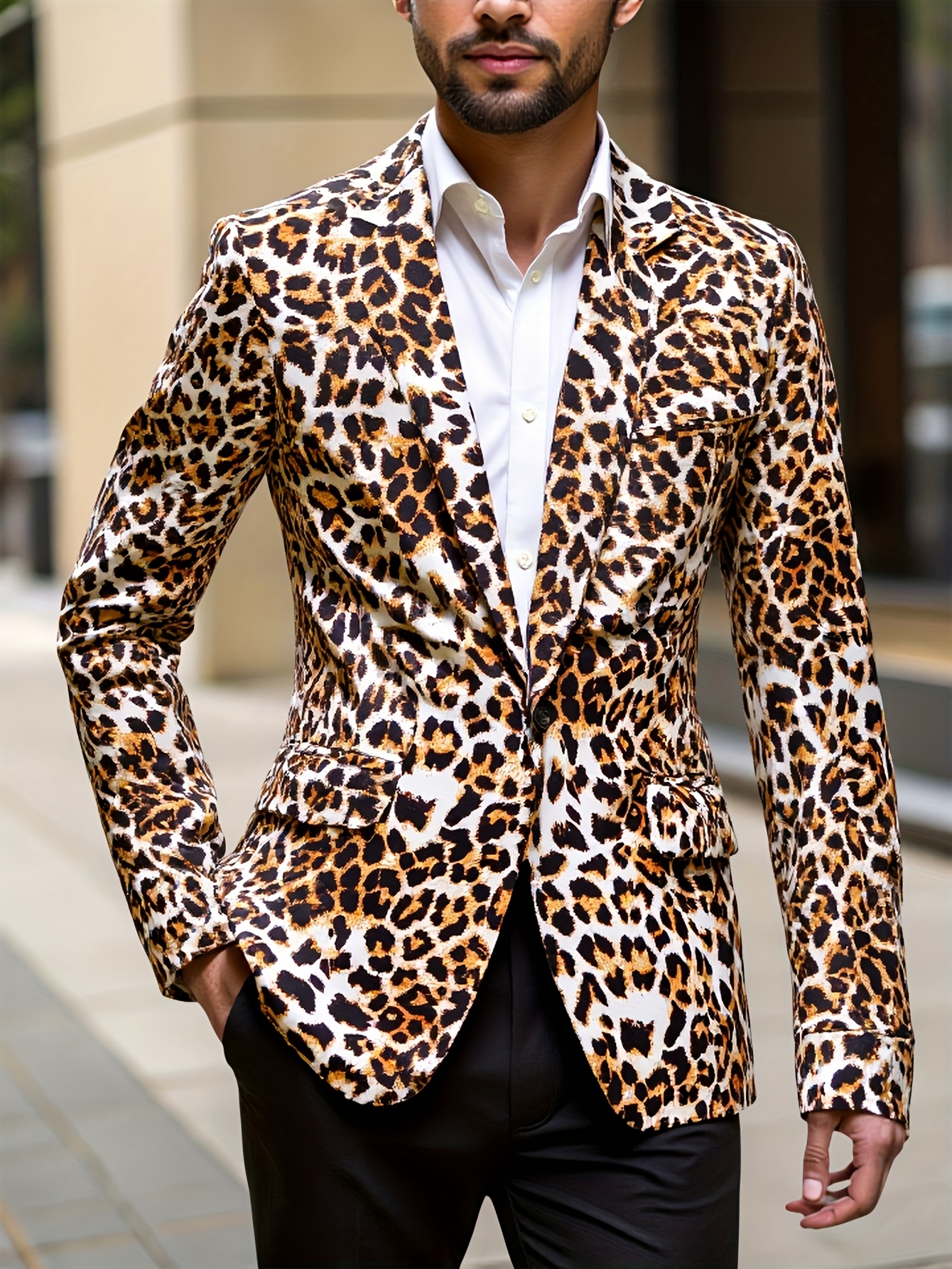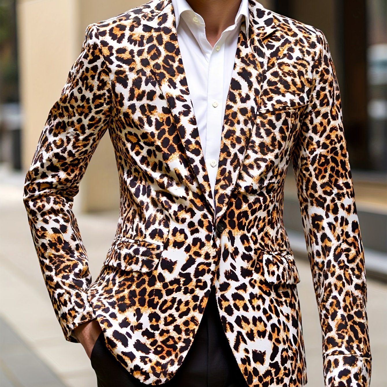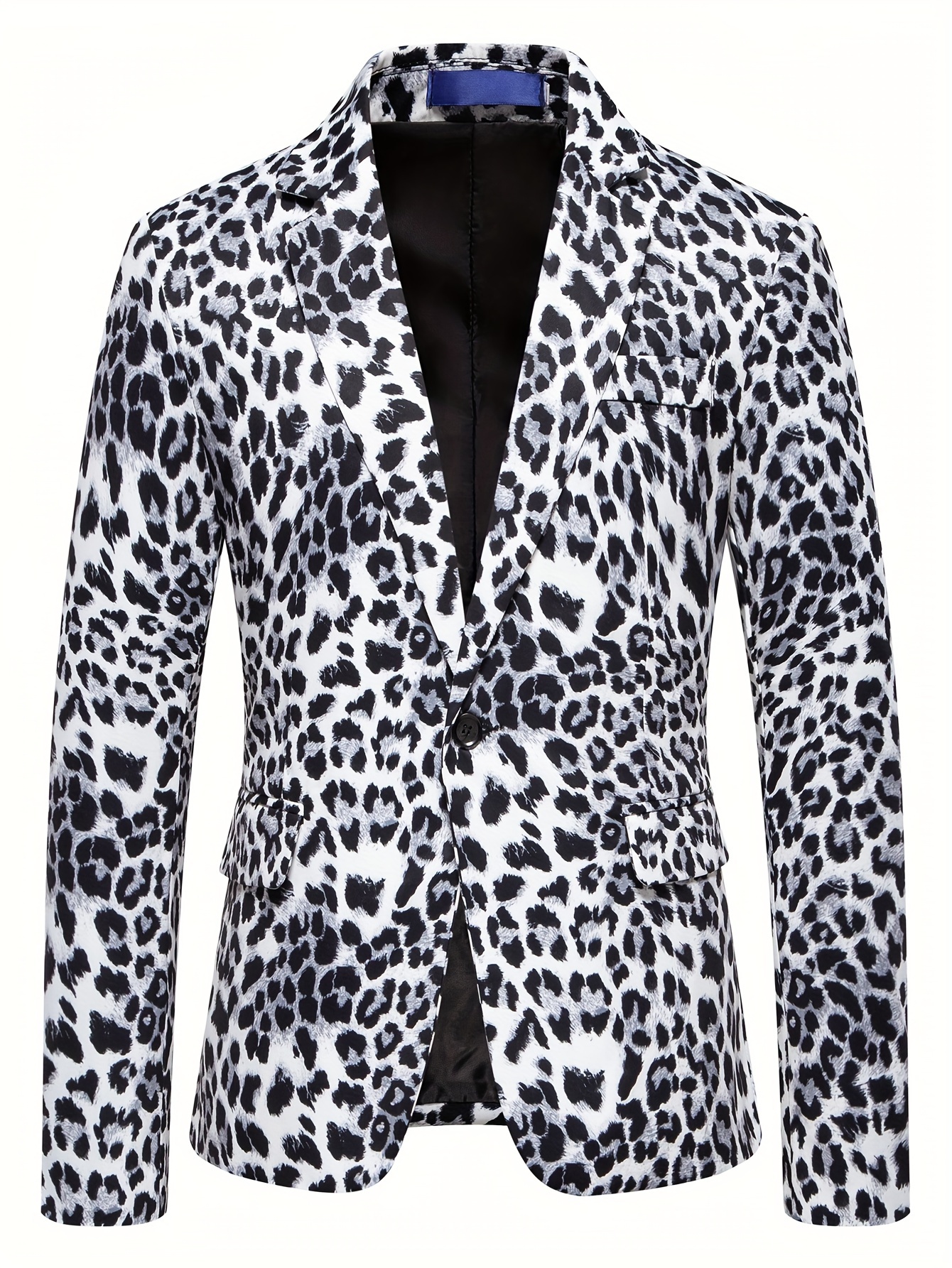 1pc Men’S Leopard Print Blazer – Casual Polyester Suit Jacket with Lapel Collar, Woven Non-Stretch Fabric, Skinny Fit for Fallu002FWinter