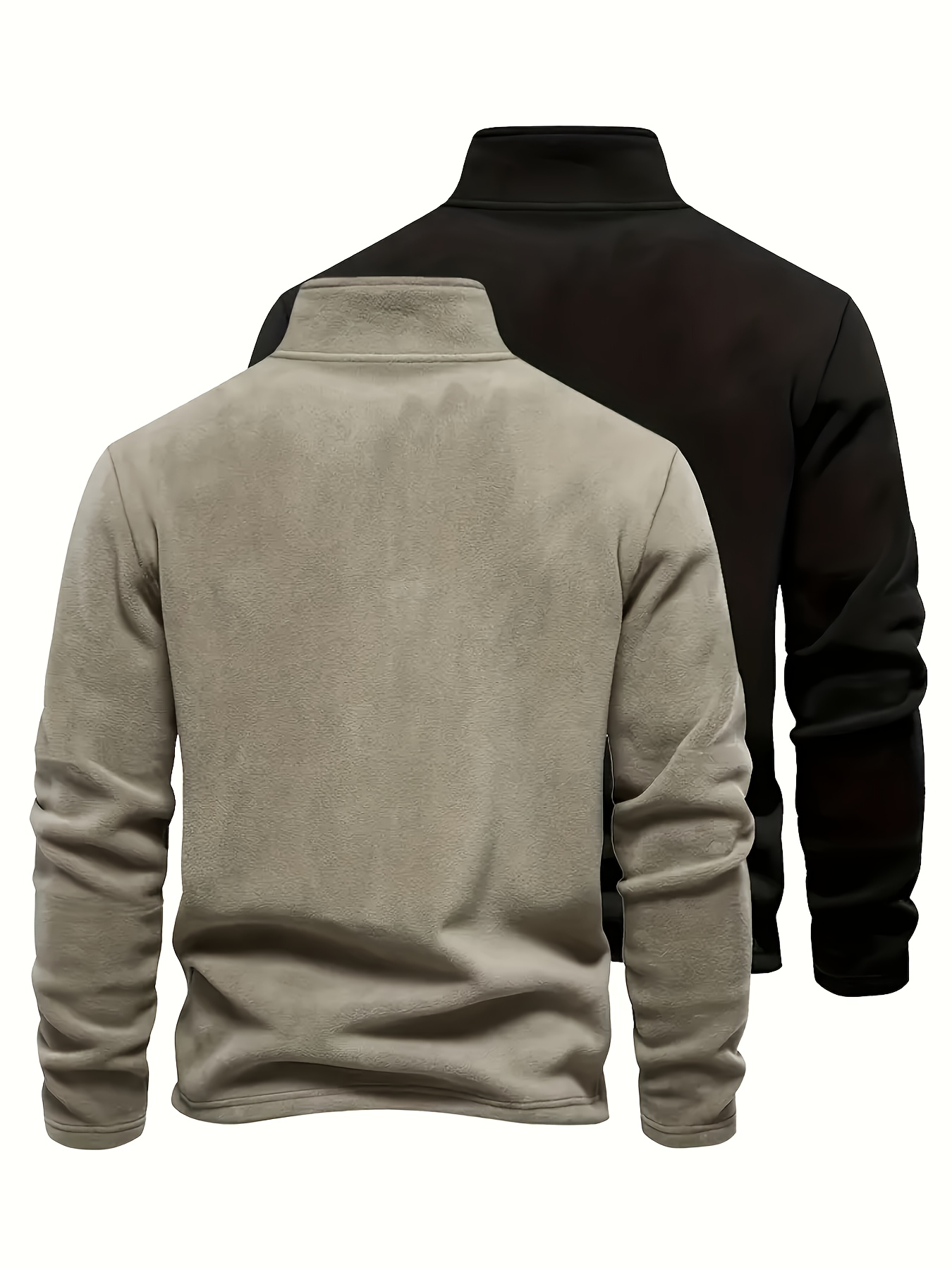 - 2pcs Men’s Retro Half-Zip Henley Sweaters with Embroidered Logo, Stand Collar & Metal Zippers – Light Beige & Black, Machine Washable Long Sleeve Pullovers for Autumnu002FWinter, Autumn Fashion, Vintage Style, Quality Stitching, Zipup Top, Mature Style