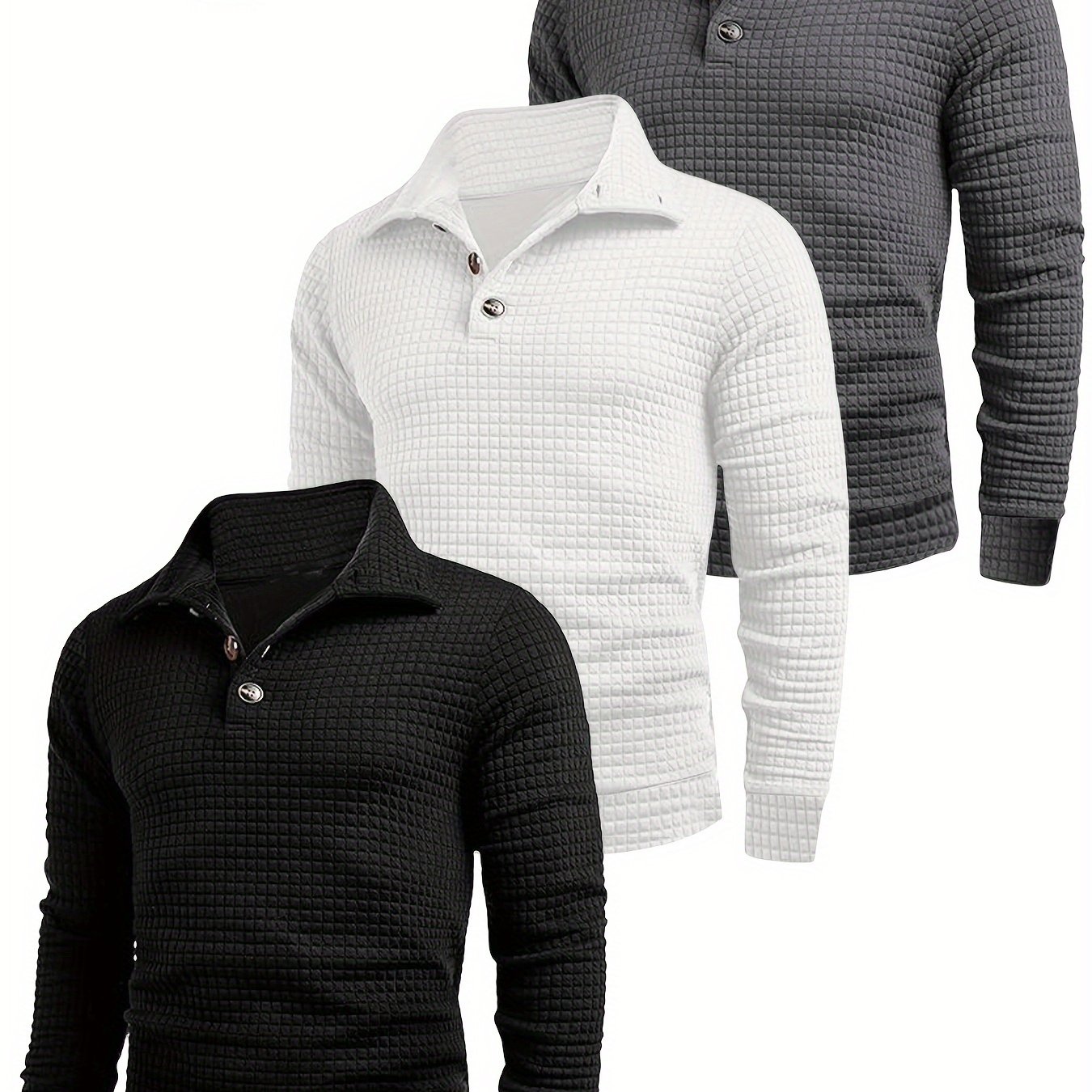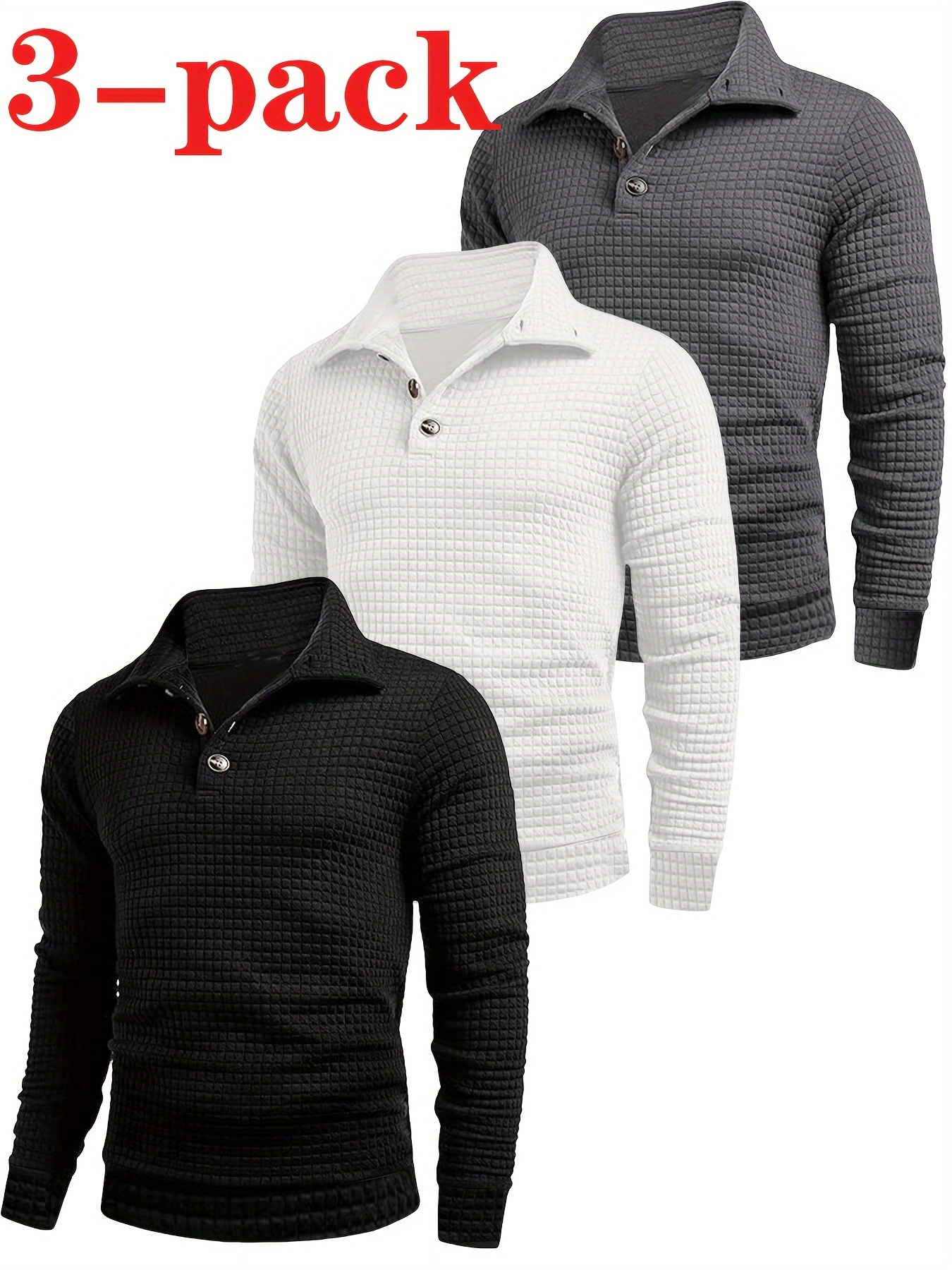 3-Pack Men’S Casual Knit Sweaters, Plaid Pattern, Stand Collar, Long Sleeve, Polyester 100%, Slight Stretch, Regular Fit, Fall Collection