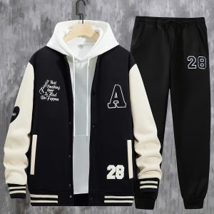 This product has multiple variants. The options may be chosen on the product pageMen's SetsMen’s Fallu002FWinter Fashion Embroidered Varsity Sports Jacket And Pants Set