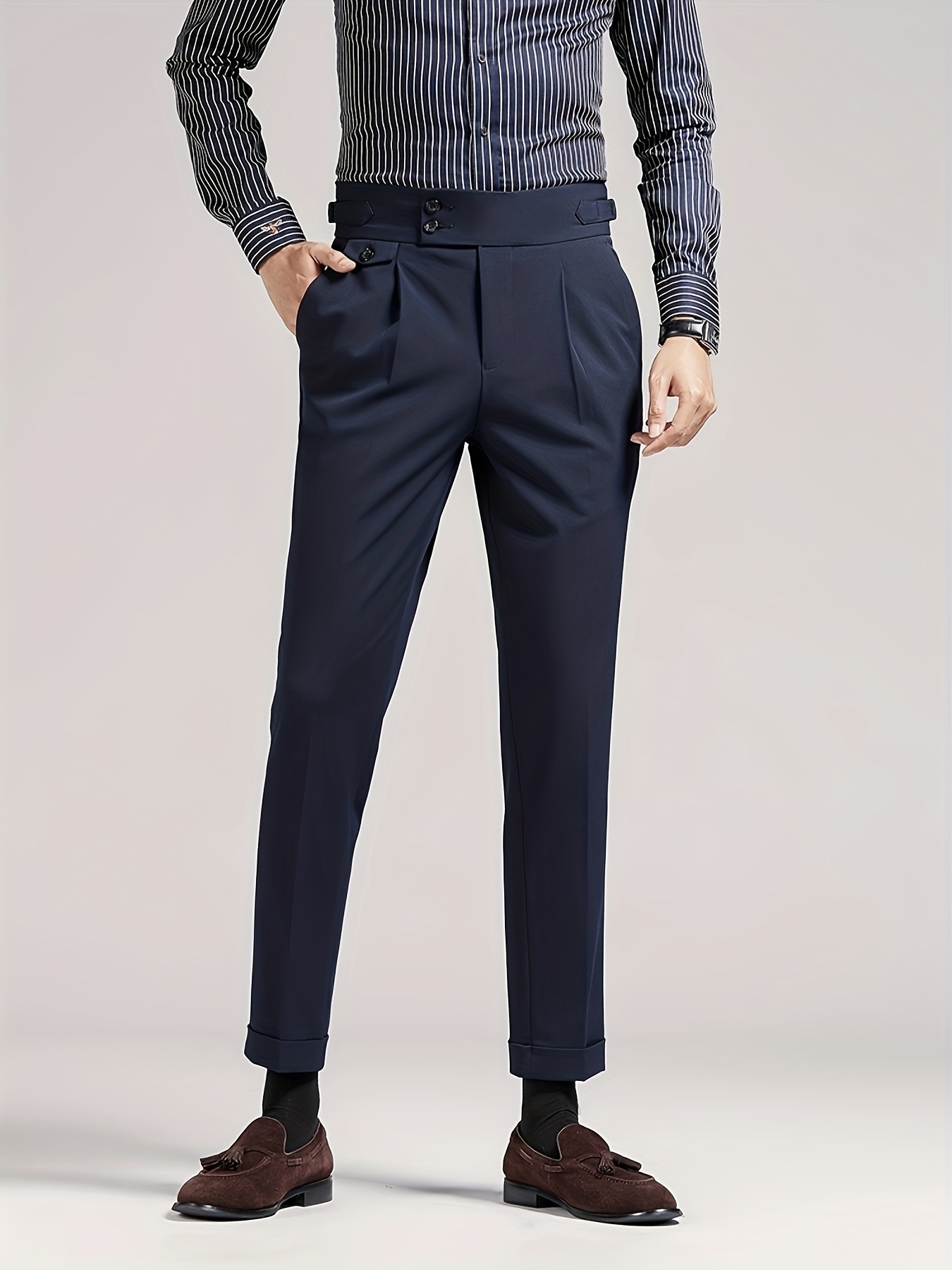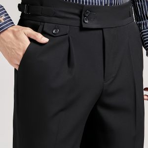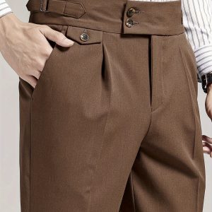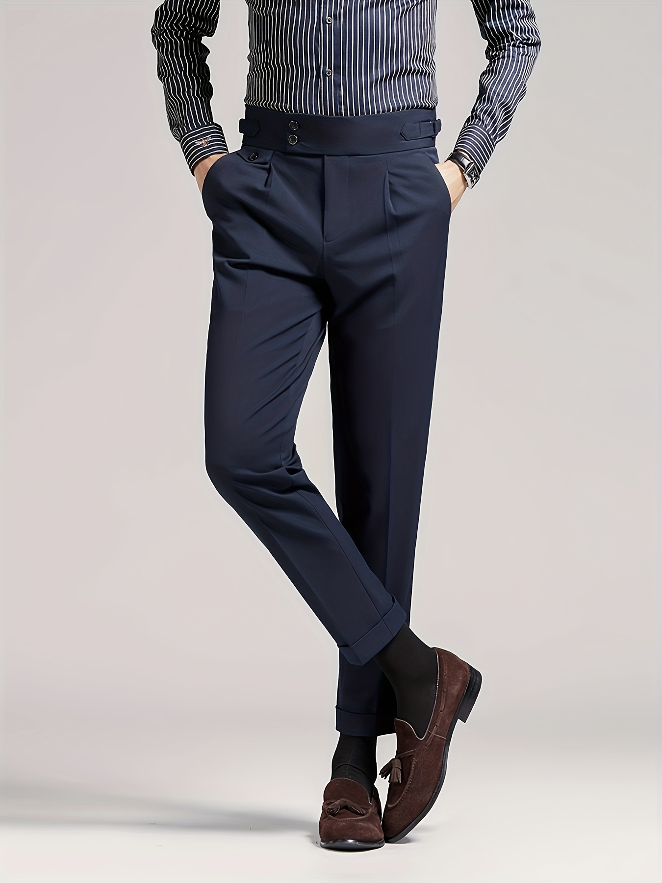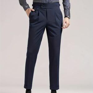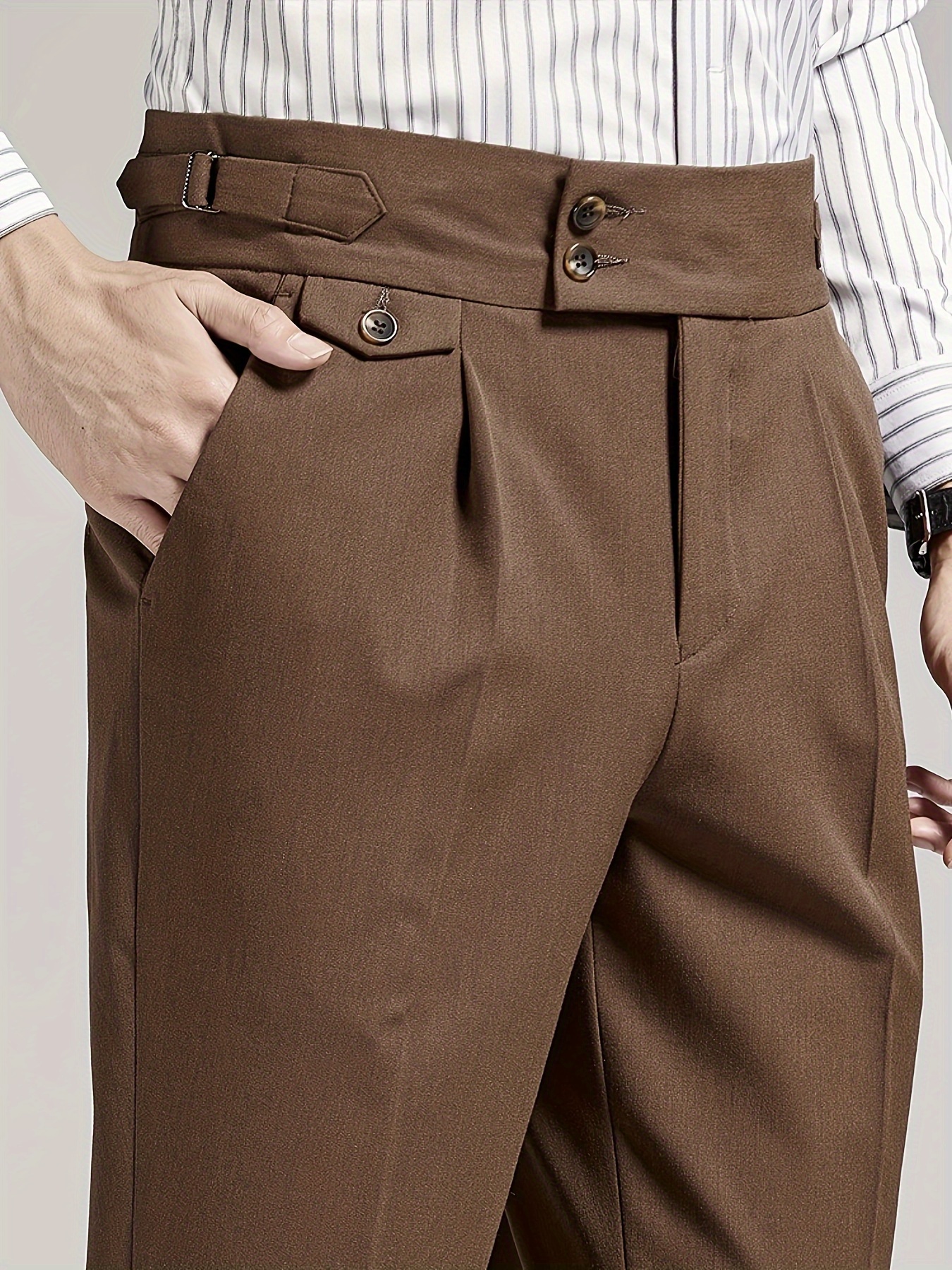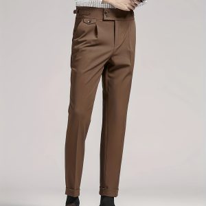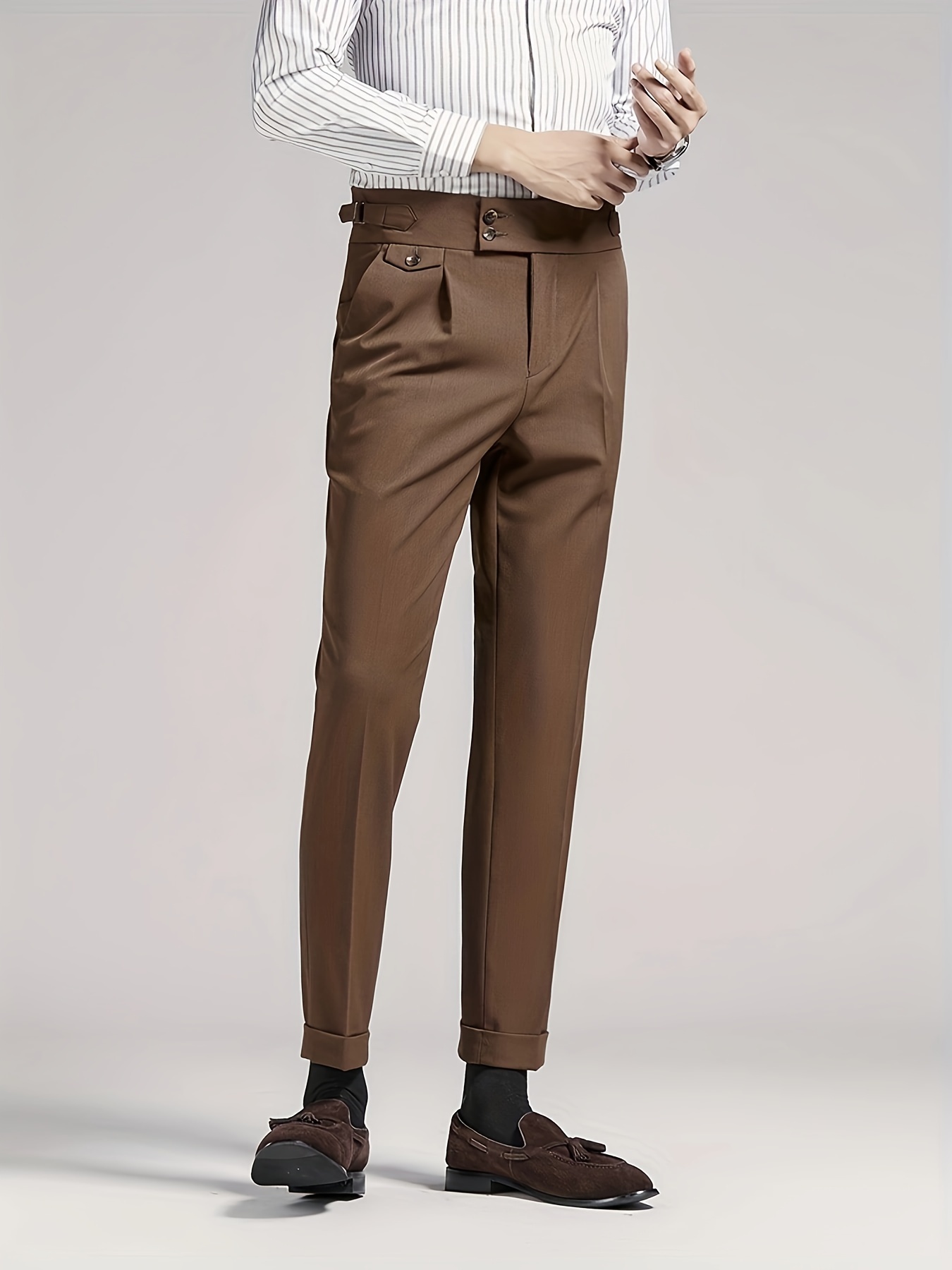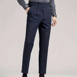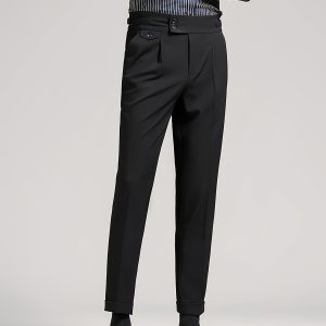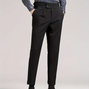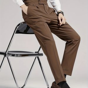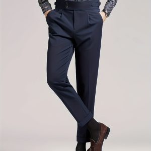 Men’S Casual Cropped Suit Pants, Solid Color, Polyester 68%, Viscose 28%, Spandex 4%, Regular Fit, Mid Waist, Woven Fabric with Slight Stretch, Springu002FFall Work Style, 270gu002Fm – Naples Collection