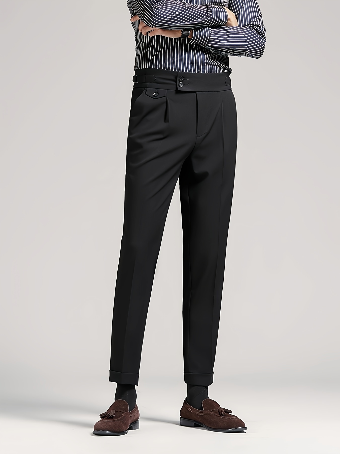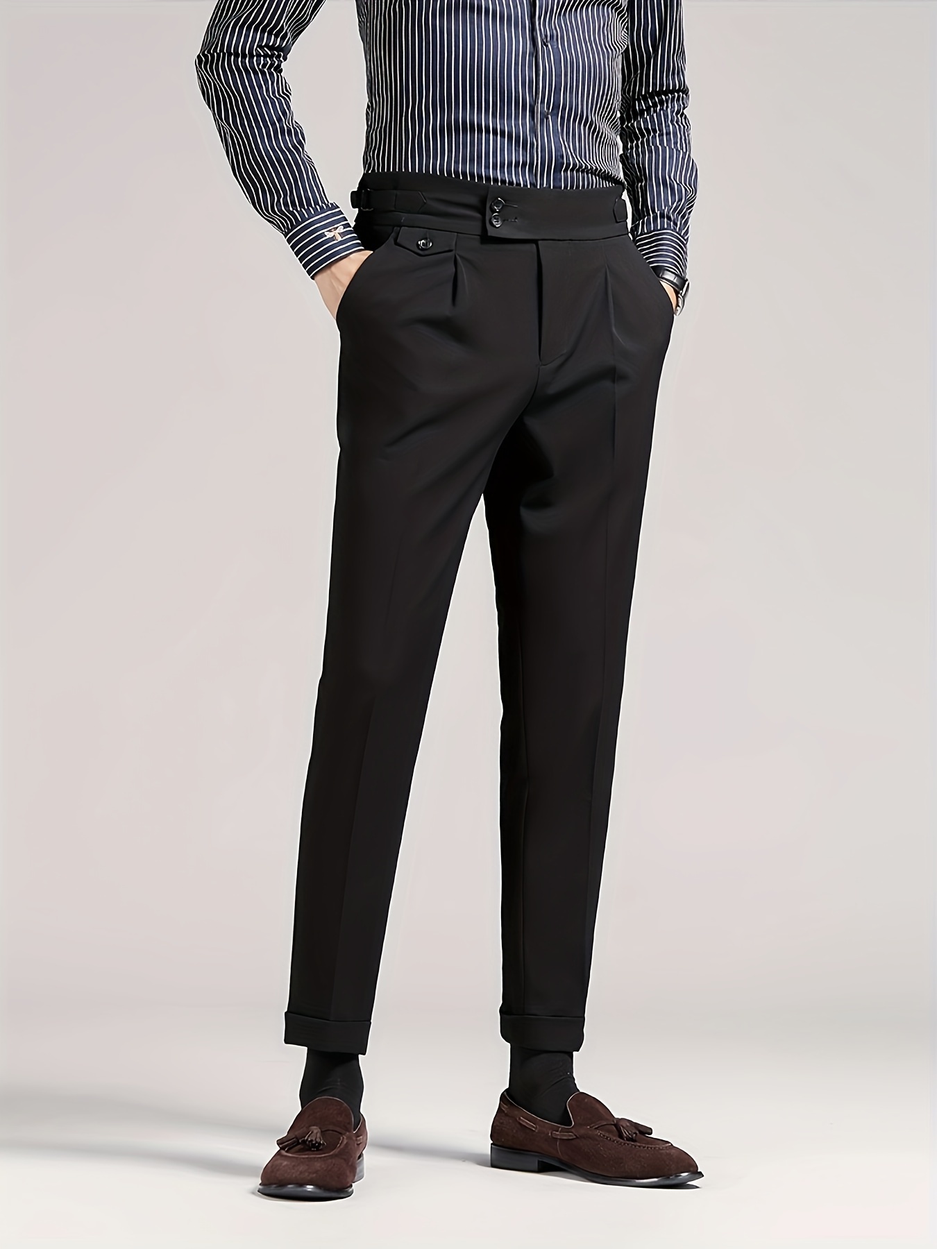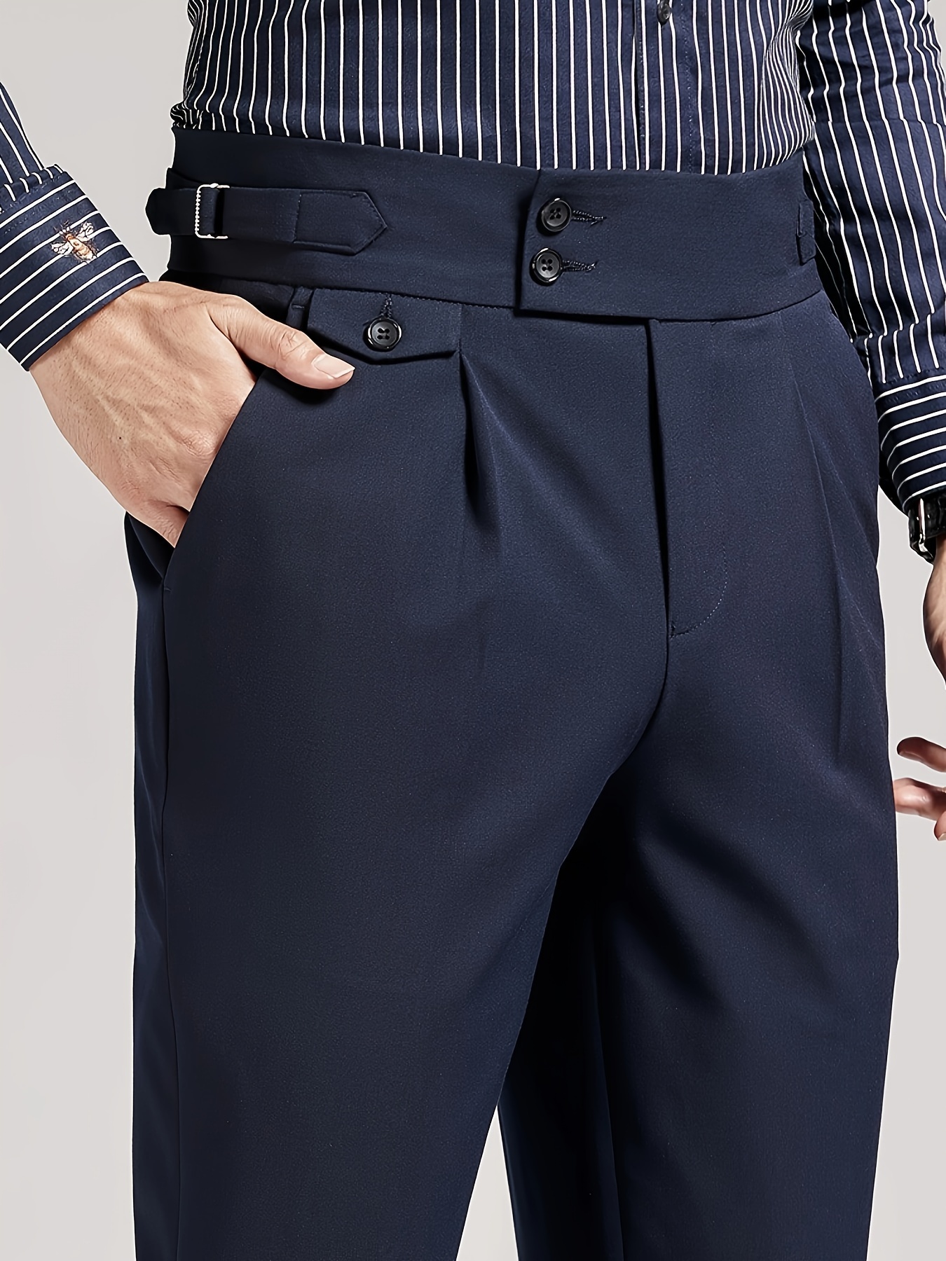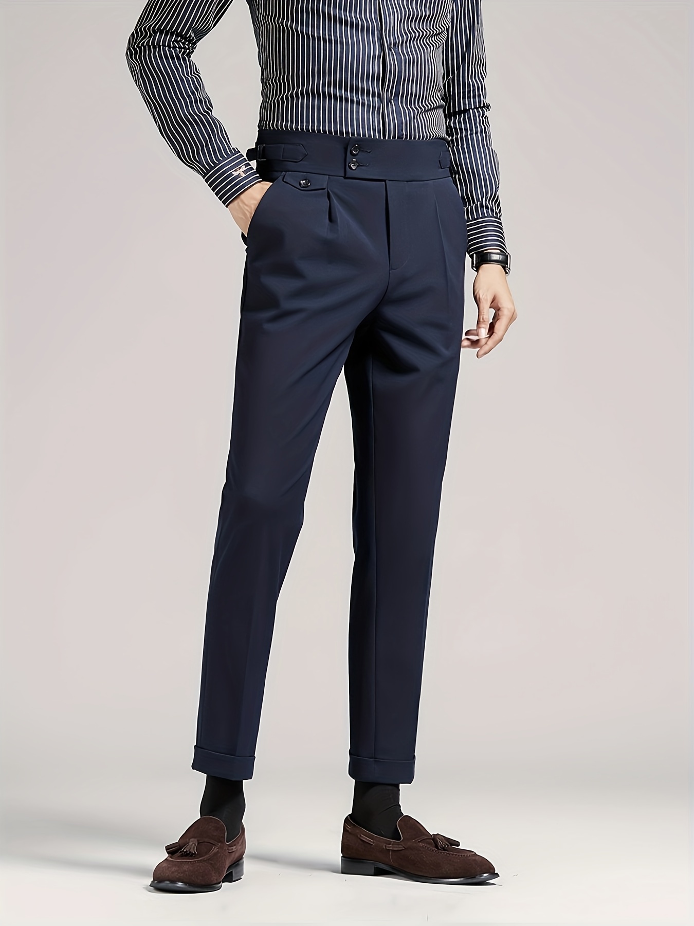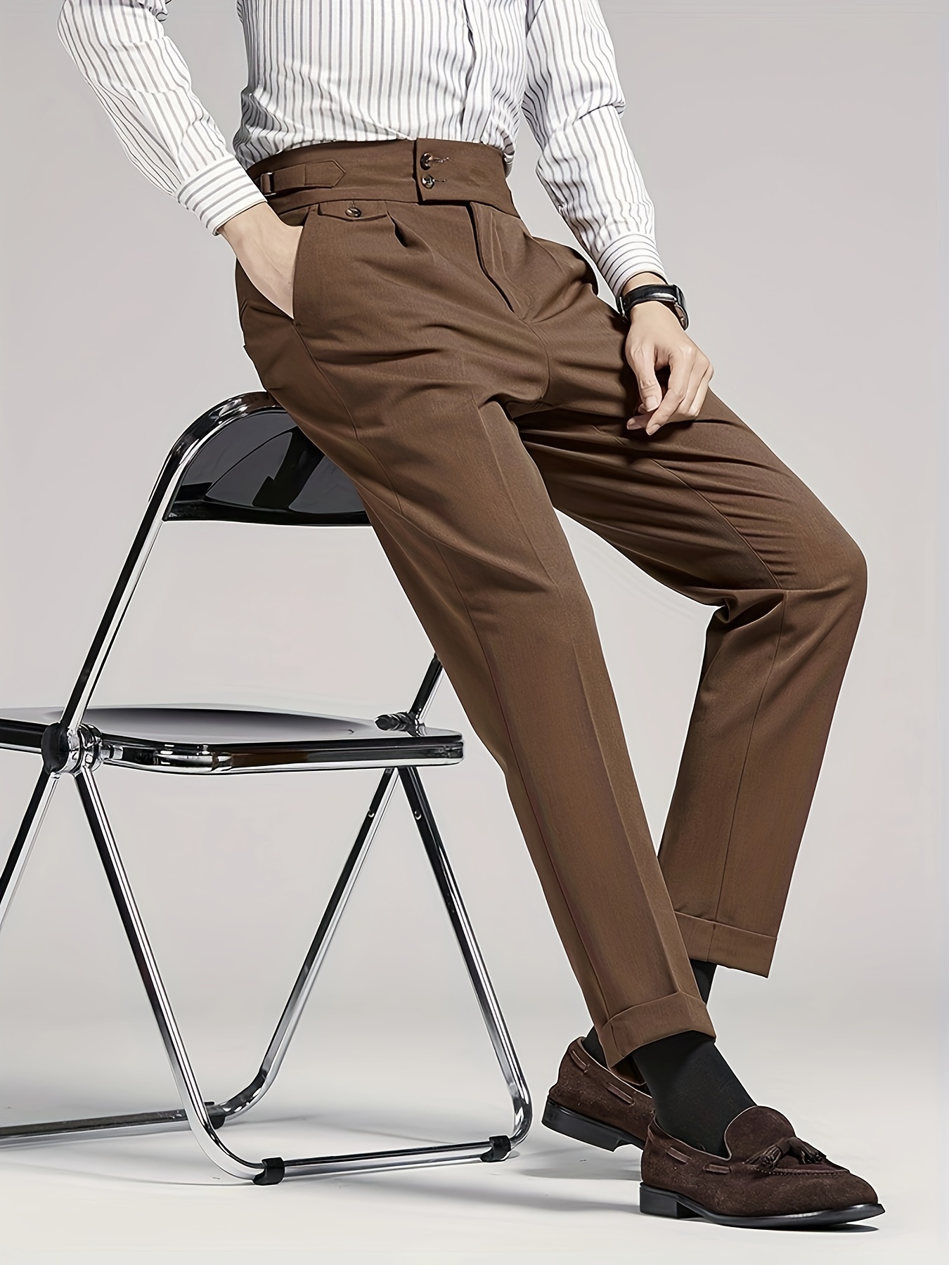 Men’S Casual Cropped Suit Pants, Solid Color, Polyester 68%, Viscose 28%, Spandex 4%, Regular Fit, Mid Waist, Woven Fabric with Slight Stretch, Springu002FFall Work Style, 270gu002Fm – Naples Collection