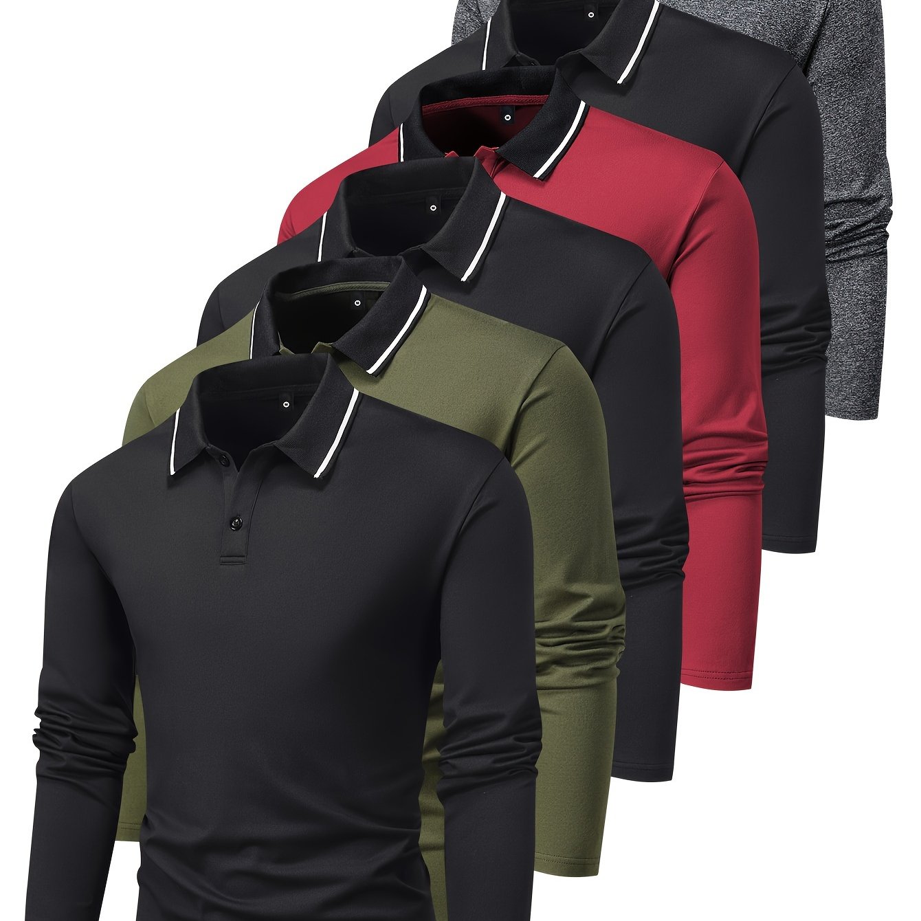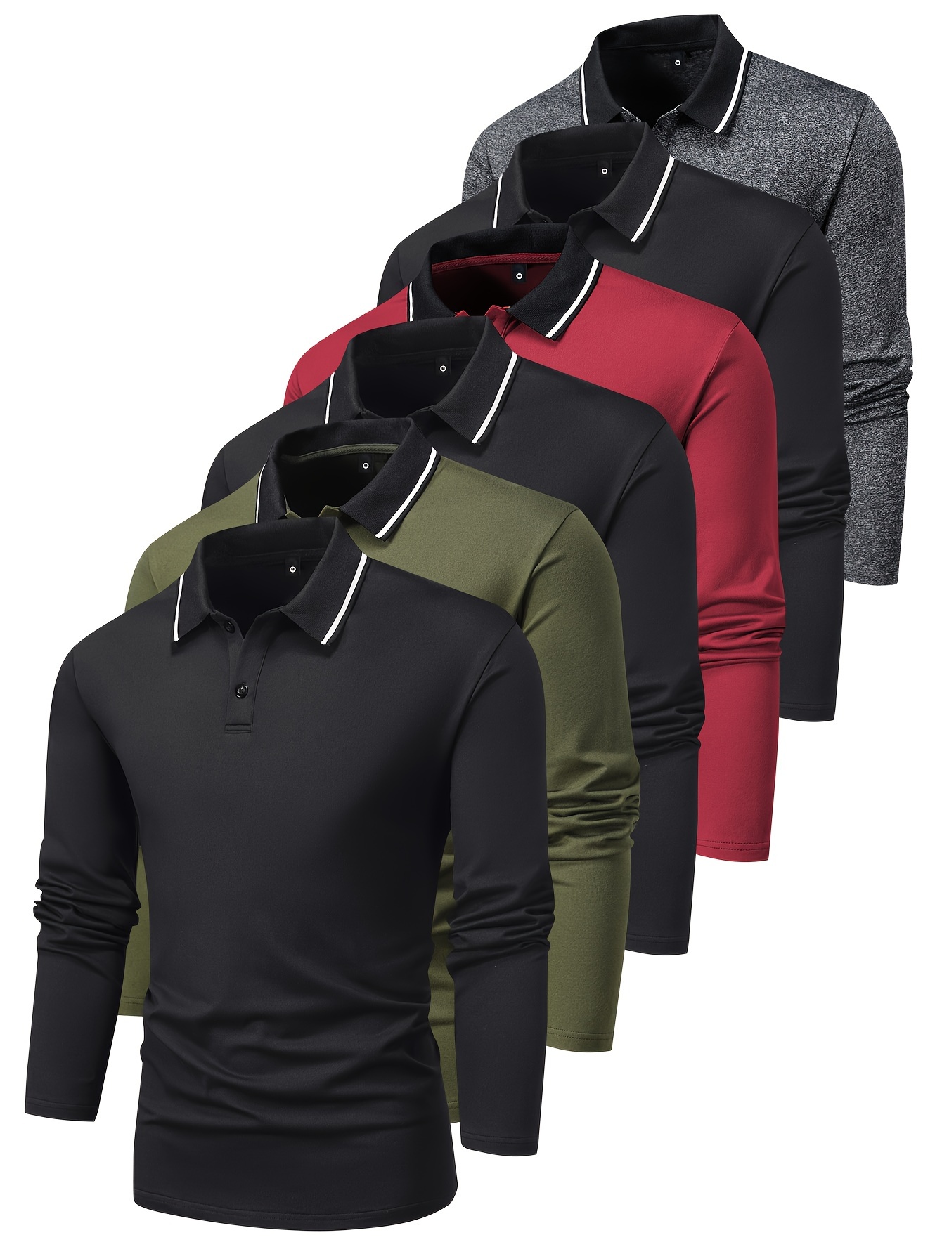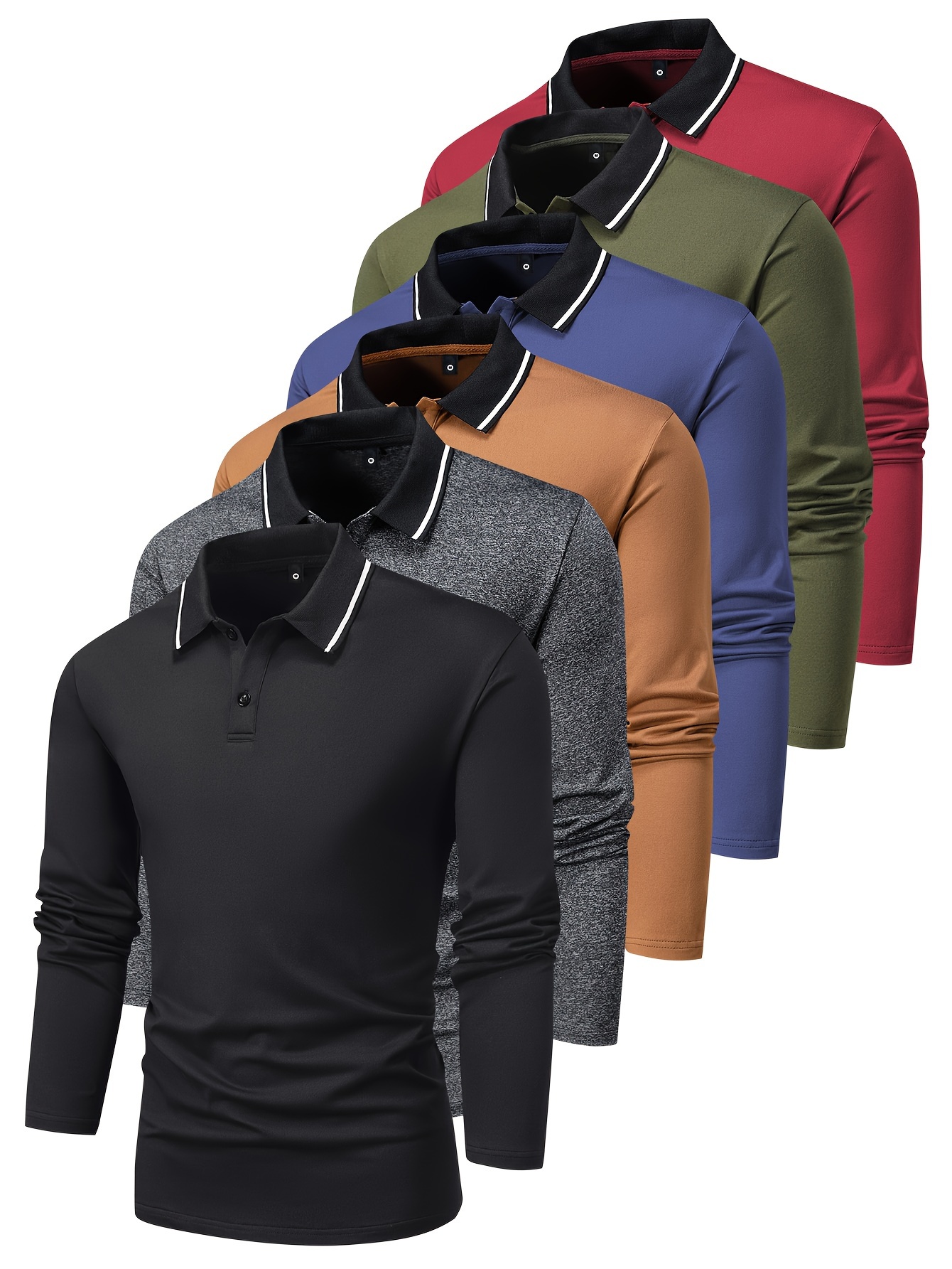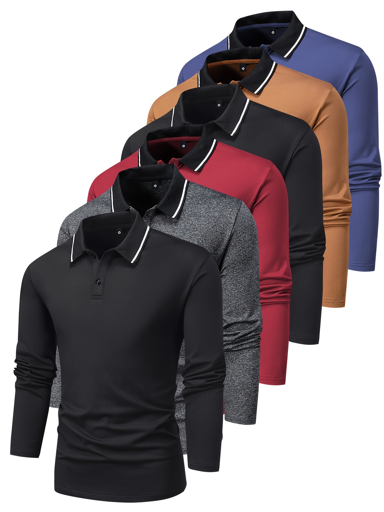 - Men’S Casual Long Sleeve Button-Detail Shirts – 95% Polyester, 5% Spandex with Lapel Collar and Slight Stretch, Solid Knit Fabric for Outdoor Fitness Training, Pack of 6