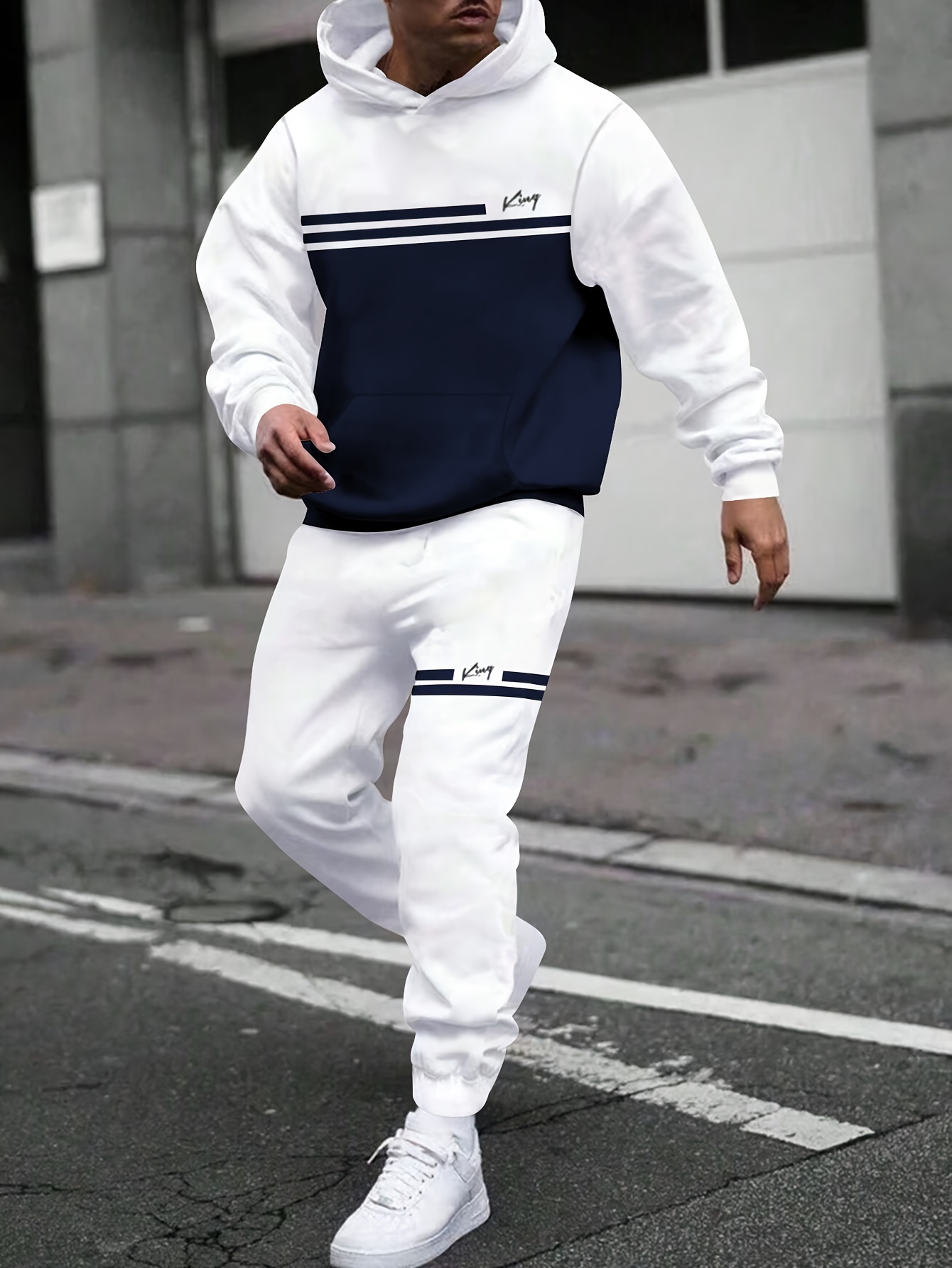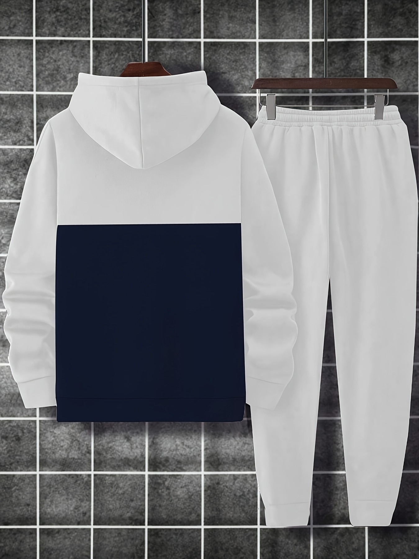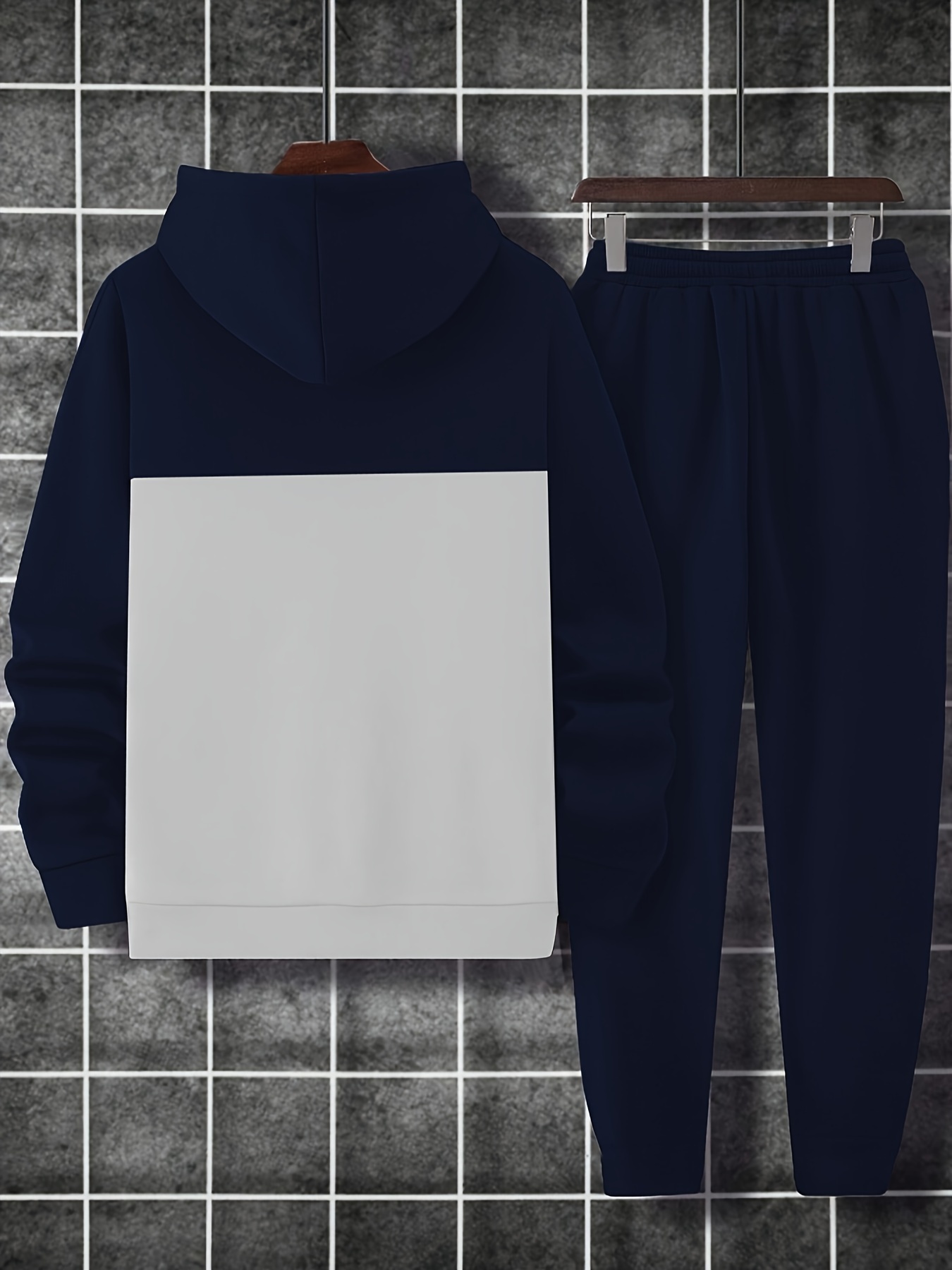 - Men’s Casual Printed Patchwork Drawstring Hoodie and Sweatpants Set