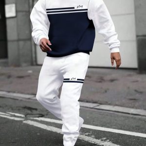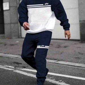 Be the first to review “Men’s Casual Printed Patchwork Drawstring Hoodie and Sweatpants Set” Cancel reply