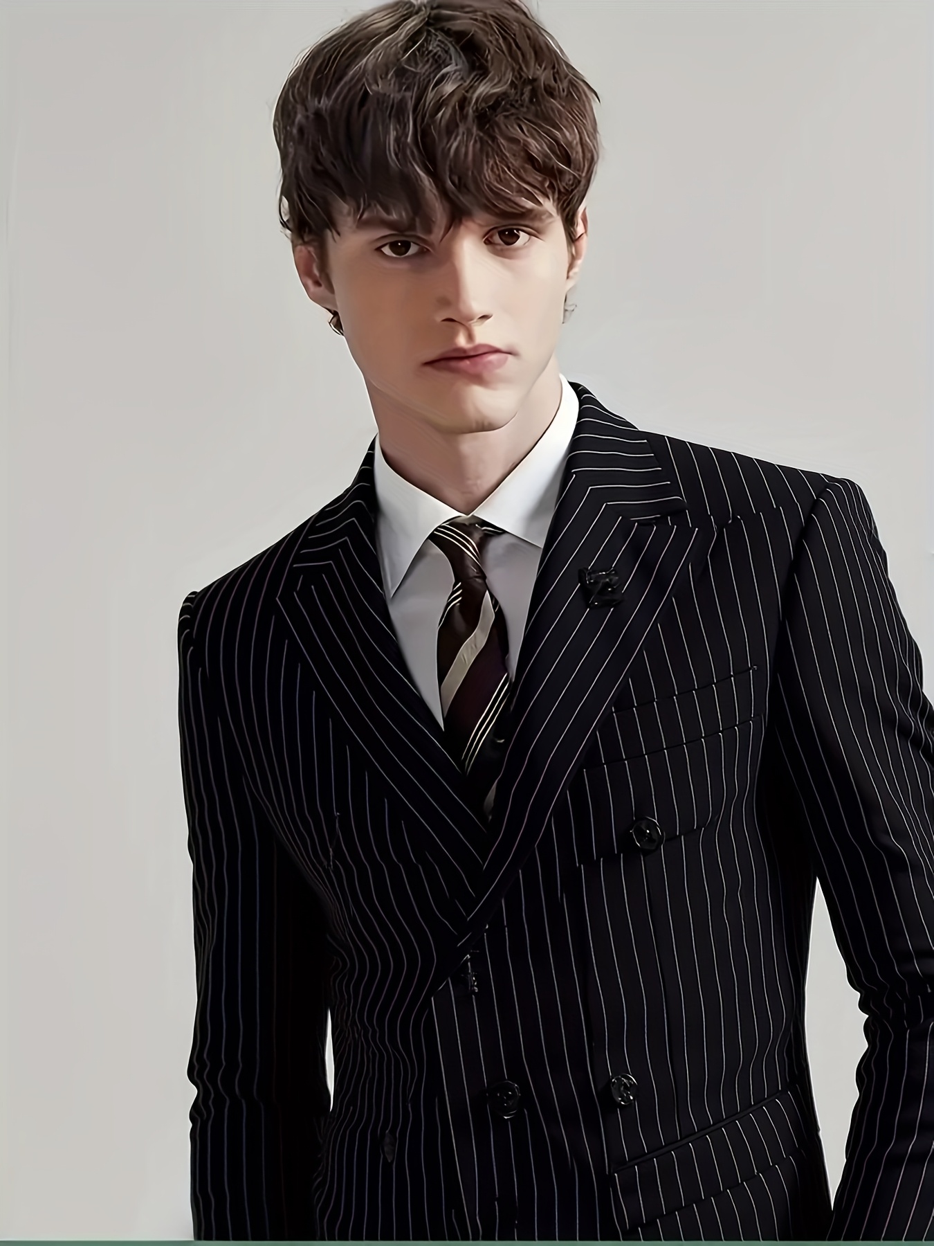 - Men’s Casual Striped Double-Breasted Suit Jacket – Regular Fit, Suitable for Business, Beach, Travel & Evening Outings – Versatile Formal and Casual Wear for All Seasons, Trendy Men’s Fashion
