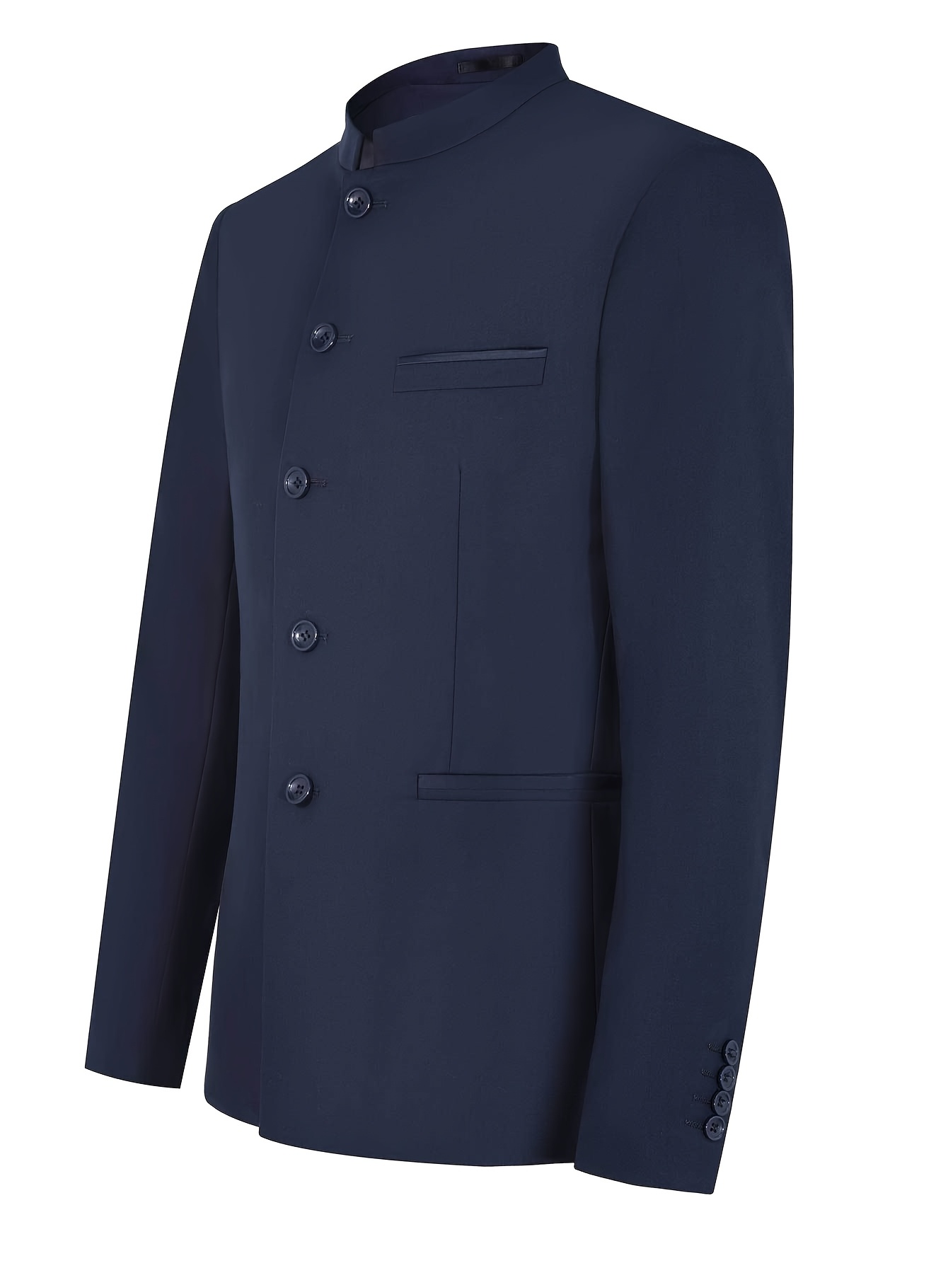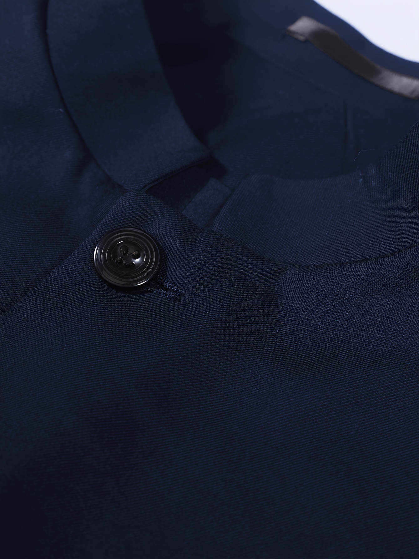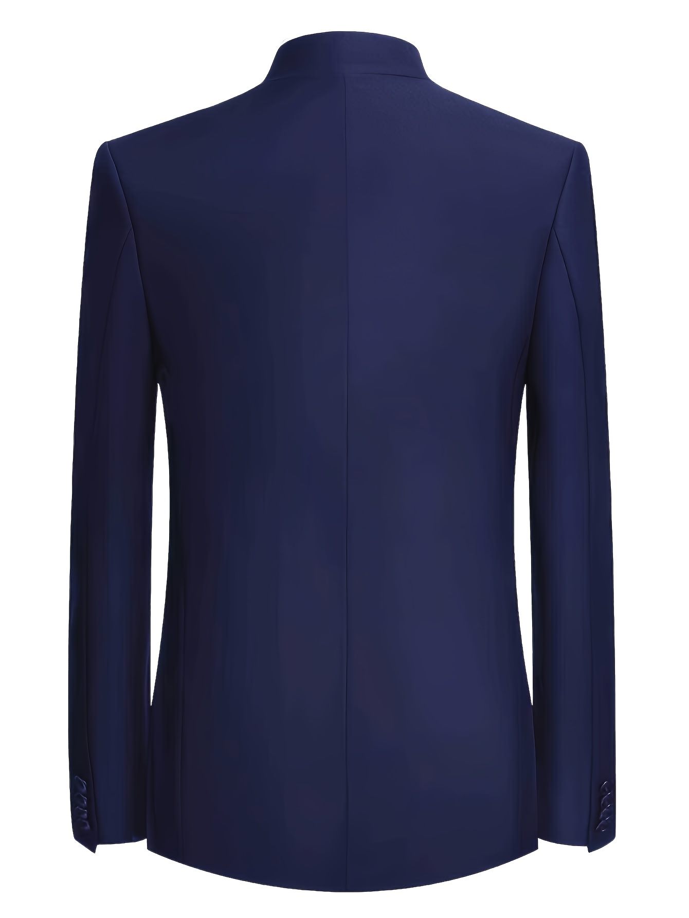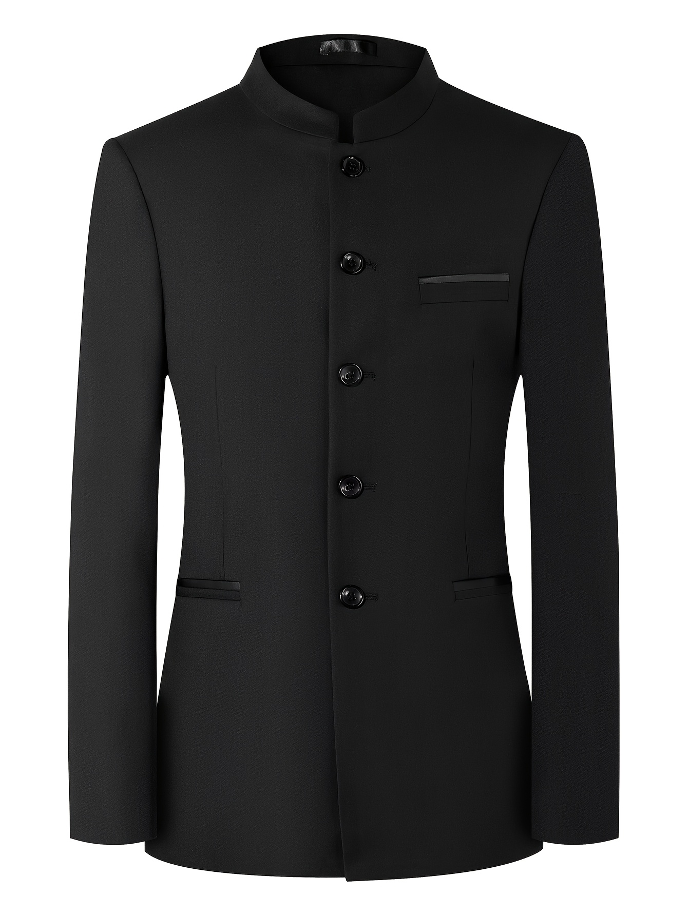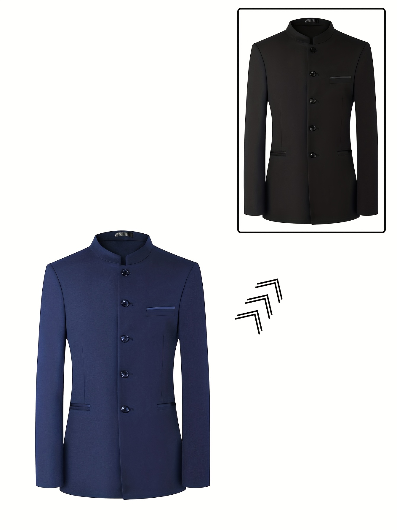 Men’S Chinese-Style Stand Collar Blazer with Black Buttons & Pockets – Solid Black Casual Business Jacket for All Seasons, Formal Attire, Classic Design, Smooth Texture