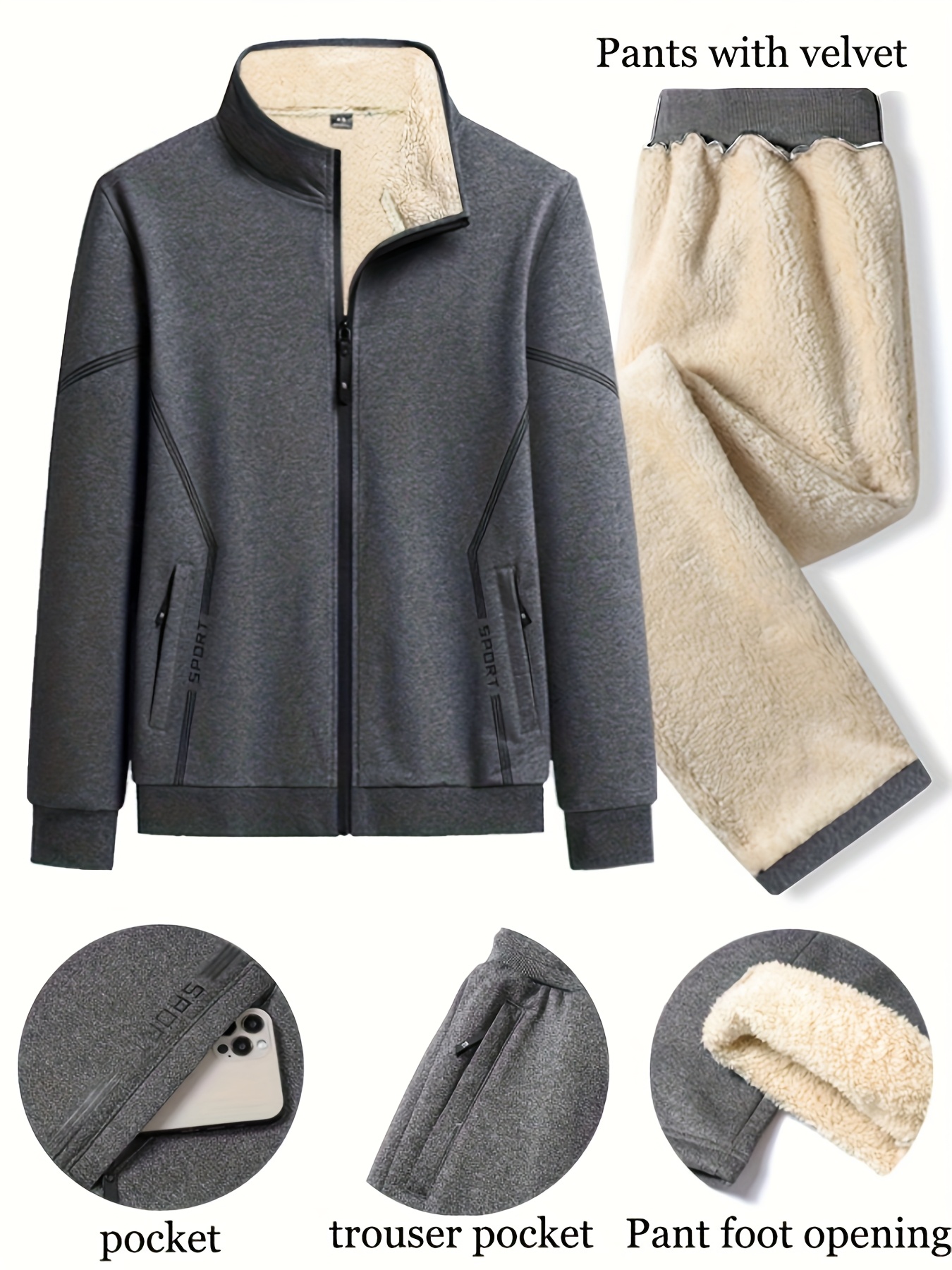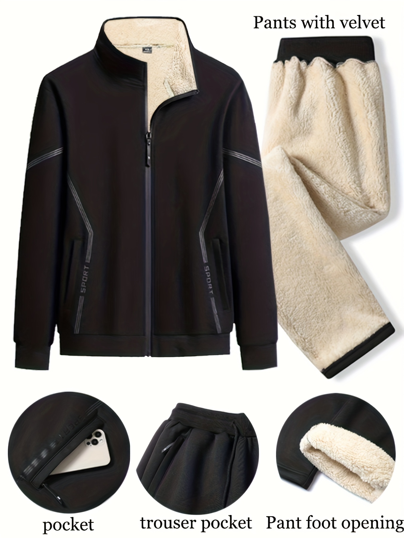 Men’S Heavyweight Thermal Sweatshirt & Pants Set – Thick Fleece-Lined Winter Warmth, Loose Fit Long Sleeve Pullover with Zipper Closure, u002F Casual Sportswear, Winter Clothes, Cold Weather Apparel, Cozy Clothing, Outdoor Enthusiasts