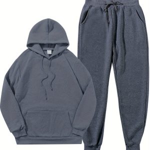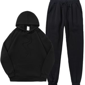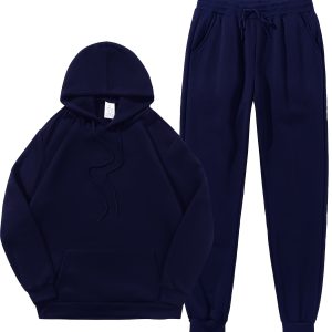 Men’s Hoodie Sweatpants Set Solid Color Pullover and Joggers Loose Casual Long Sleeve Pants Men’s Pullover Sweatshirt
