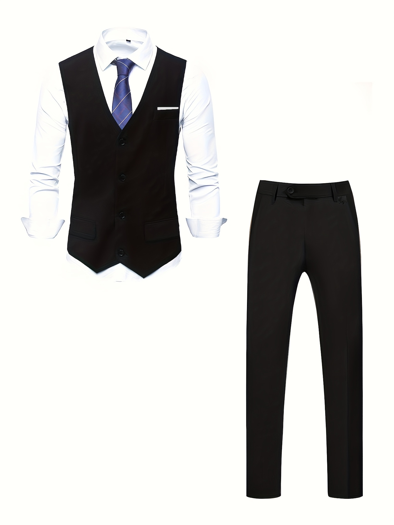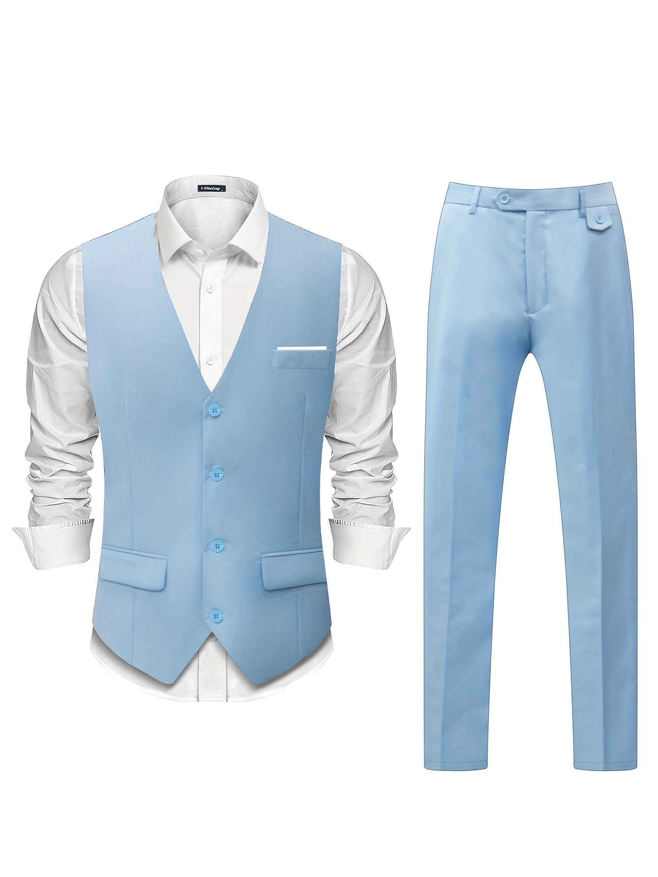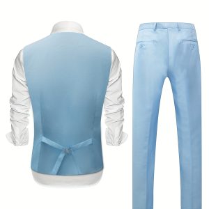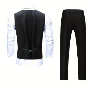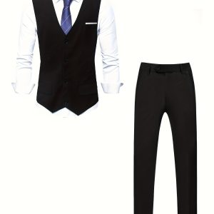 - Men’S Springu002FAutumn New High-Quality Fashion Solid Color Suit Set with Vest + Trousers Formal Light Business Casual Wedding Trend 2pcs