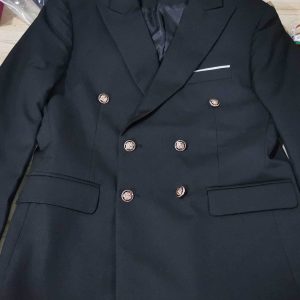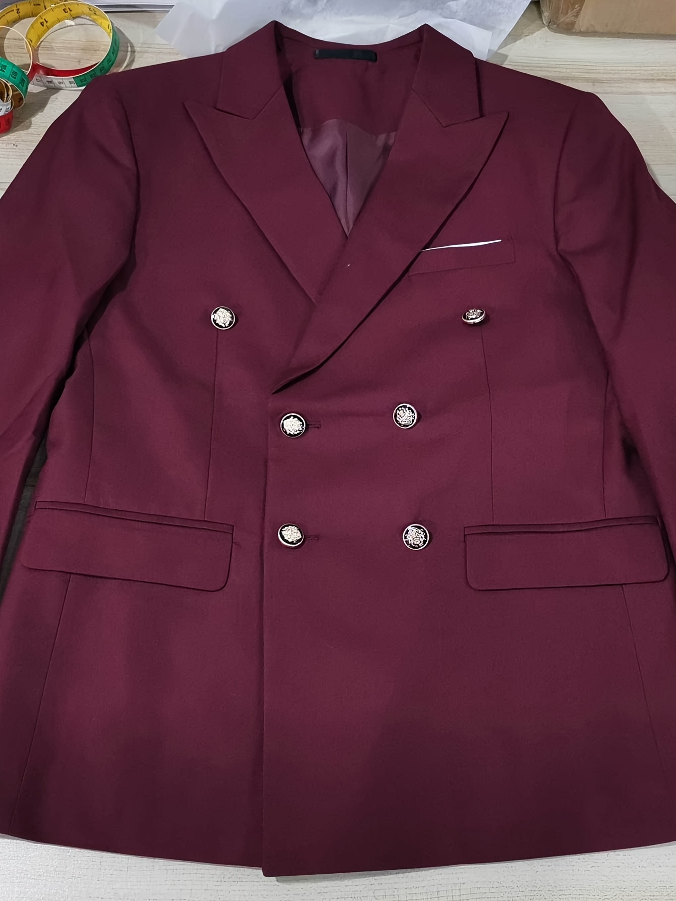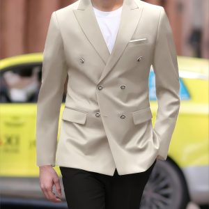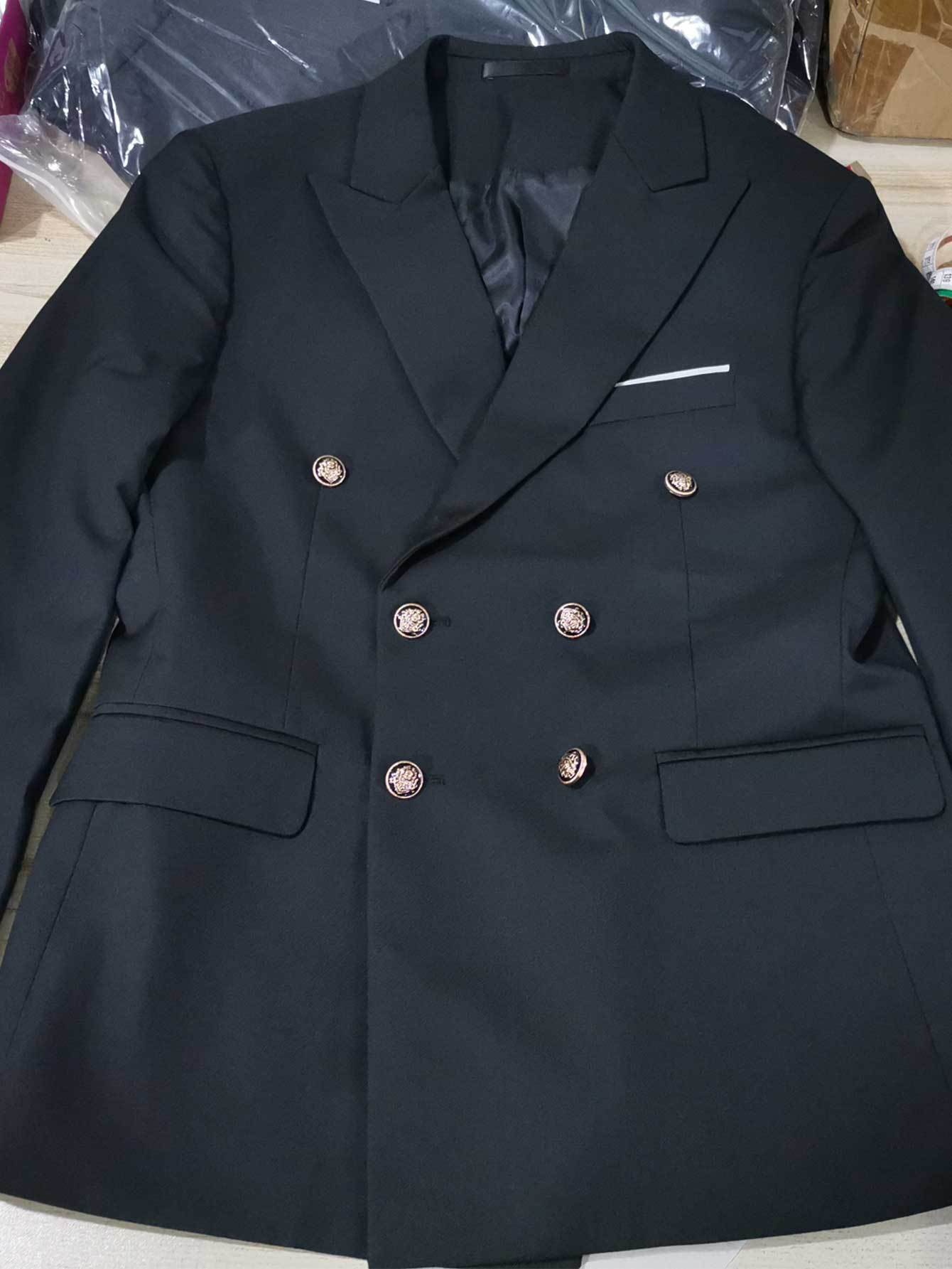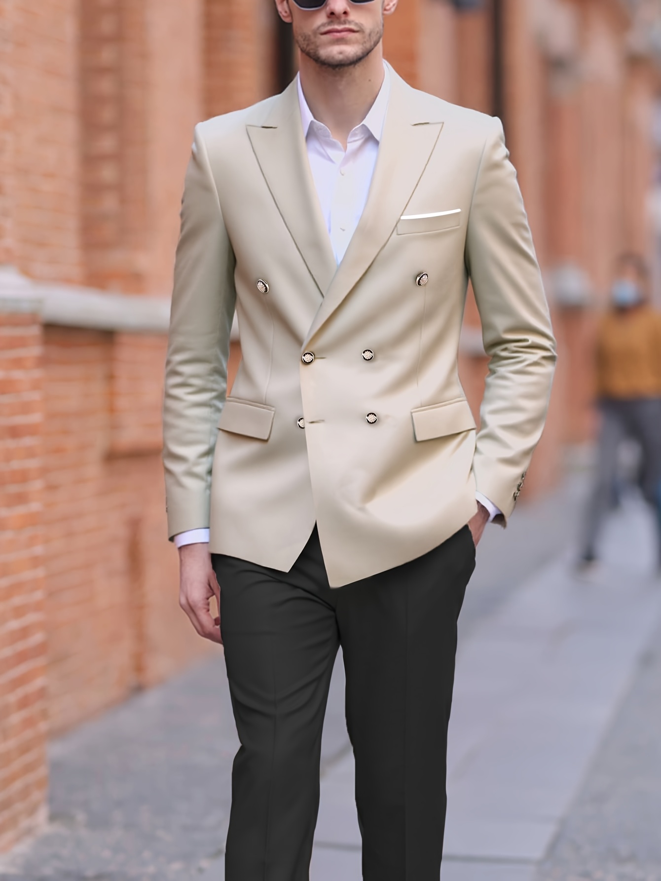 Navy Blue Men’s Double-Breasted Notch Lapel Suit Jacket – Luxury Business Casual Coat with Golden-Tone Buttons, Regular Fit All-Season Versatile Formal & Casual Wear, Solid Color Design